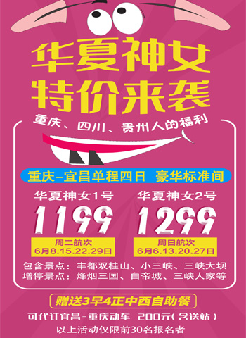 您好,歡迎來到重慶中國青年旅行社 經營許可證:L-CQ-CJ00008