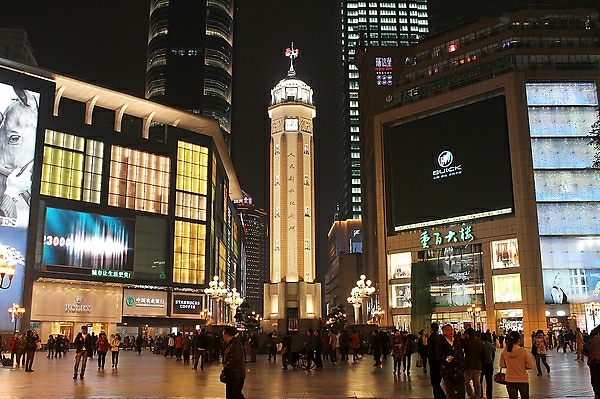 解放碑展示重慶獨(dú)有的都市形象,集逛街購物、娛樂、小吃、打望于一體。