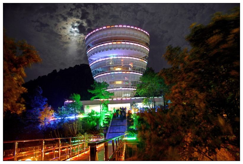 受重慶獨(dú)特地質(zhì)條件影響,如果說南濱路是觀賞渝中半島的最佳地點(diǎn),那么也就是說南濱路就是觀賞山城夜景的最佳地點(diǎn),這樣的邏輯是顯然站不住腳的。難道燈火輝煌,繁華至極的南濱路就不需要觀賞了嗎?其實(shí)在南濱路背后,有一座巍峨的高山,在高山之顛有一個視野寬廣的祭臺。它就是一棵樹觀景臺。由于地理位置的優(yōu)越,現(xiàn)代的燈飾藝術(shù)的華彩,站在 視野開闊的“一棵樹”觀景臺,實(shí)在是一種美的享受。遠(yuǎn)遠(yuǎn)望去,渝中區(qū)象一個發(fā)光的寶島,通體透明;環(huán)抱的兩江,流光溢彩;飛跨的長橋,輪廓清晰;層見疊出,錯落有致,色彩繽紛的整座城市,在夜空的襯托下,難分天上人間。來此觀景的中外游人常年不絕,中央不少領(lǐng)導(dǎo)人來重慶視察工作之余,也曾光臨此處。天下夜景在渝州,萬家燈火不夜城,天上星、水中月、人間燈,天地一色,恍如仙境。滿城的燈光灑落江心,把江面照耀得恍如白晝,讓你分辨不清何處是水?何處是岸?一棵樹觀景臺是城市的窗口,除了見證城市長高、變亮,還見證著城市的人氣和開放。一棵樹年接待游客500多萬人。現(xiàn)在,光臨一棵樹的絕大部分游客來自世界各地,有記錄的旅游團(tuán)隊(duì)就有80多個國別。他們分別操作著本國語言贊嘆:“重慶城,夜很美!”在南山一棵樹觀景臺賞山城夜景,最大的特點(diǎn)是可以俯瞰整個渝中半島、長江及重慶石板坡長江大橋、南濱路等,視野開闊,居高臨下,特別是燈光中錯落有致的渝中半島象一塊五彩的寶石鑲嵌在長江和嘉陵江之間,恍若天上的街市。渝中半島的燈光灑落在長江的江面上,水、岸、島既相區(qū)別又互為依托,展現(xiàn)在眼前的是一個實(shí)實(shí)在在的山城。了解山城重慶,就從這里開始,也屬于到重慶旅游、工作的朋友了解重慶的必游之地。