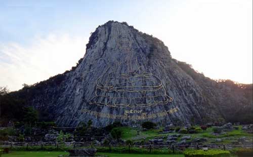 芭提雅七珍佛山是慶祝泰皇登基五十周年時所鑄造,以雷射方式雕刻,再鋪上金粉,融合了素可泰及蘭娜時期的藝術概念,此為芭達雅最大的釋迦牟尼佛雕像,共用18噸重的24K金雕塑而成,佛像高130公尺 (包括佛身109公尺+底座21公尺),寬70公尺,佛像的名字稱Phraphut Mahava Chira Utamopatsadsada意思為佛是智慧的象征,天地之事無所不知。