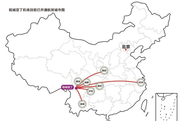 稻城亞丁機場目前已開通航班城市圖