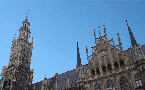 廣場北邊氣勢宏偉的哥特式建筑是慕尼黑新市政廳,每到中午11點和12點,你可以在廣場上欣賞市政廳鐘樓有趣的木偶舞蹈。