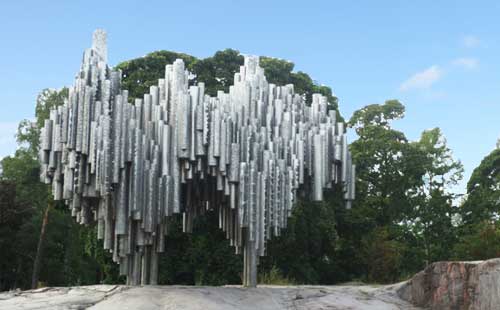 西貝柳斯公園內的兩座雕像是園內的最大亮點,最顯眼的一座由600根空心鋼管組成,呈波浪狀排列,約有6.5米高,酷似一架巨型管風琴,風吹過之時,這架“管風琴”會發出悅耳玄妙的聲音,與周邊的花草樹木交相應和。這座抽象派的雕塑作品由芬蘭著名的雕塑家埃拉-希爾圖寧設計,以此來表現西貝柳斯交響樂的精髓所在。這座管風琴雕塑亦已成為赫爾辛基的地標性建筑。