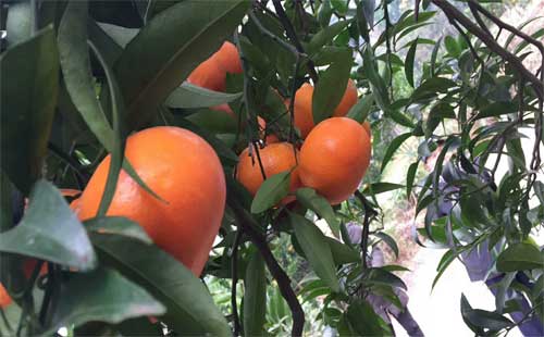 銀花村的蜜橙和李子十分有名。不過古路蜜橙在3月才成熟,李子是夏季成熟,而冬天的古路鎮銀花村血橙、柑橘正紅,金燦燦的掛滿了枝頭呈現一片豐收的景象,香氣橫溢在整個果園內,院子的血橙在樹上色澤鮮麗透亮,就如一個個小燈籠似的掛滿了枝頭,讓人忍不住想伸手去采摘。這里是常年四季生產綠色水果基地,柑橘系列分有早熟、中熟、晚熟。現在是中熟柑橘的成熟季節,雅柑蜜桔、塔羅科血橙都正是采摘的時候。
