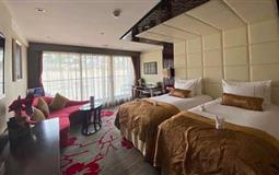總統(tǒng)七號(hào)和總統(tǒng)八號(hào)游輪,是相同設(shè)計(jì)、相同工藝的姊妹船,總統(tǒng)7號(hào)/八號(hào)游輪2013年首航,游輪噸位17000噸,最大載客人數(shù)460人,算是長(zhǎng)江上比較大的游輪。船上共設(shè)各類客房230間,載客580人,是內(nèi)河游輪中的“巨無(wú)霸”。 游輪每個(gè)房間都有獨(dú)立陽(yáng)臺(tái)更令游客隨時(shí)欣賞到長(zhǎng)江的壯麗景觀。